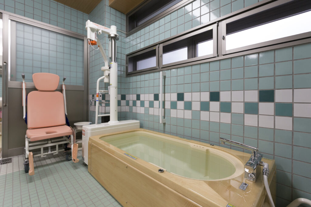 リフト浴には、天然ヒノキの浴槽を採用しています。